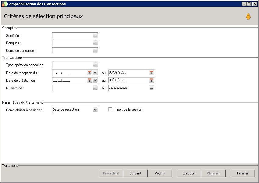 Cette zone permet de sélectionner le type de date que l'on souahite affecter à la date de comptabilisation.Date de réception du relevé ou date de création du fichier de relevé par la banque |