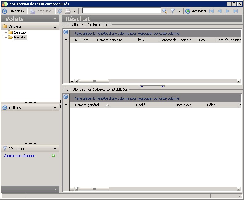 (Sage FRP 1000 Trésorerie) Menu Banque Paiement > Comptabilisation > Consultation des SDD comptabilisés