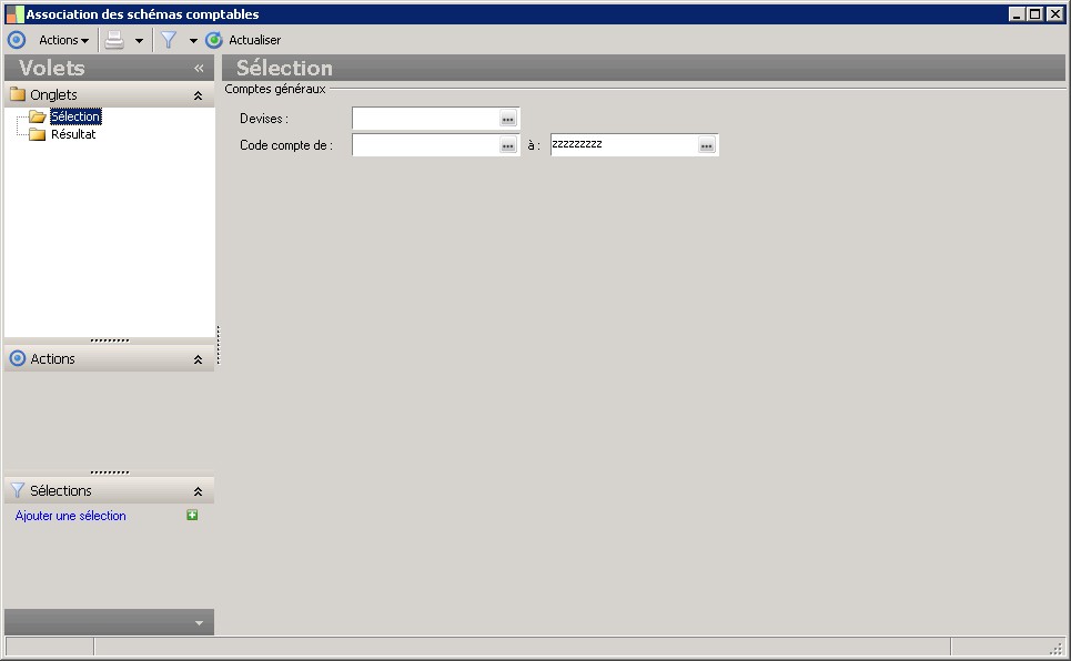 Borne inférieure pour sélection des codes de comptes généraux |