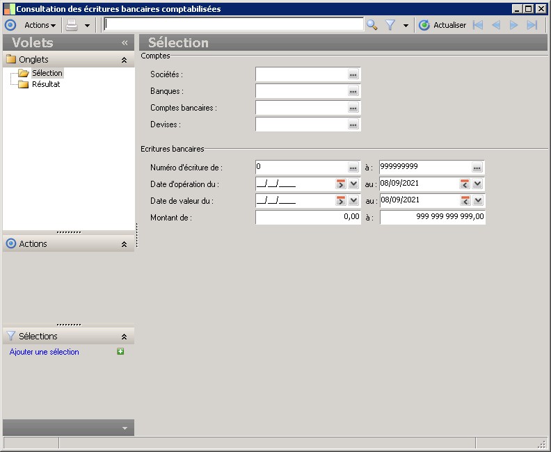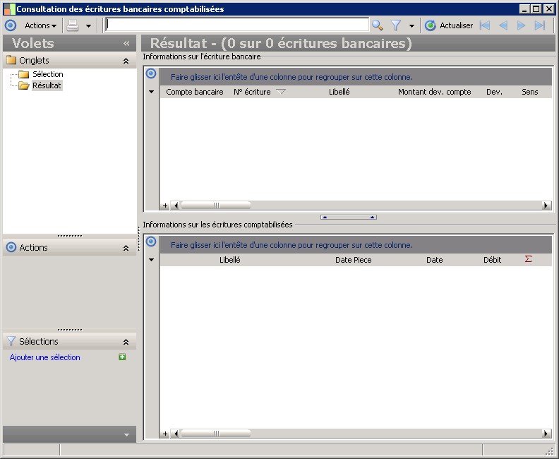 (Sage FRP 1000 Trésorerie) Menu Banque Paiement > Comptabilisation > Consultation des écritures bancaires comptabilisées