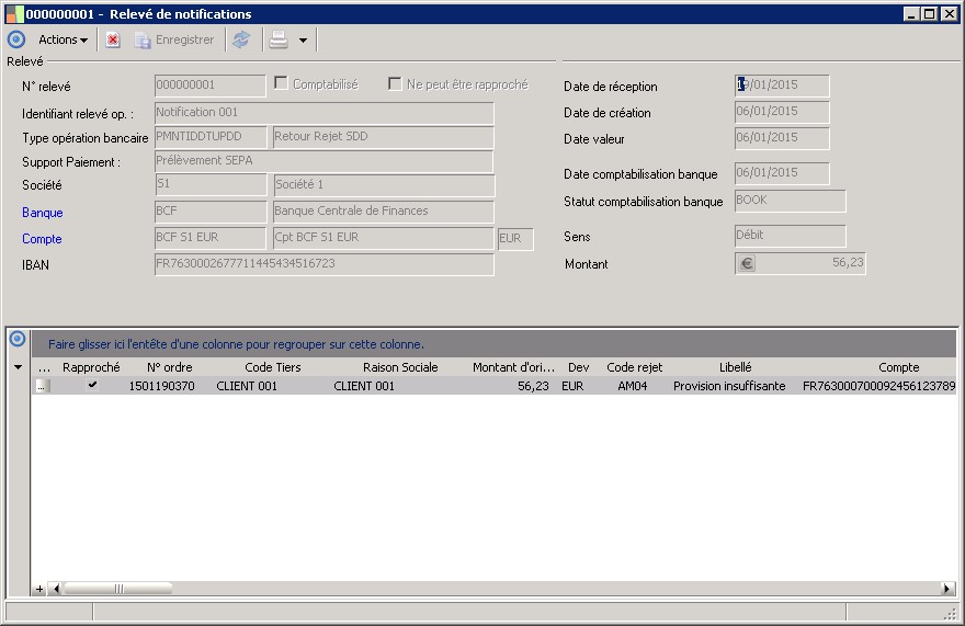 (Sage FRP 1000 Trésorerie) Menu Banque Paiement > Relevés et Notifications > Relevés de notifications > Relevé de notifications