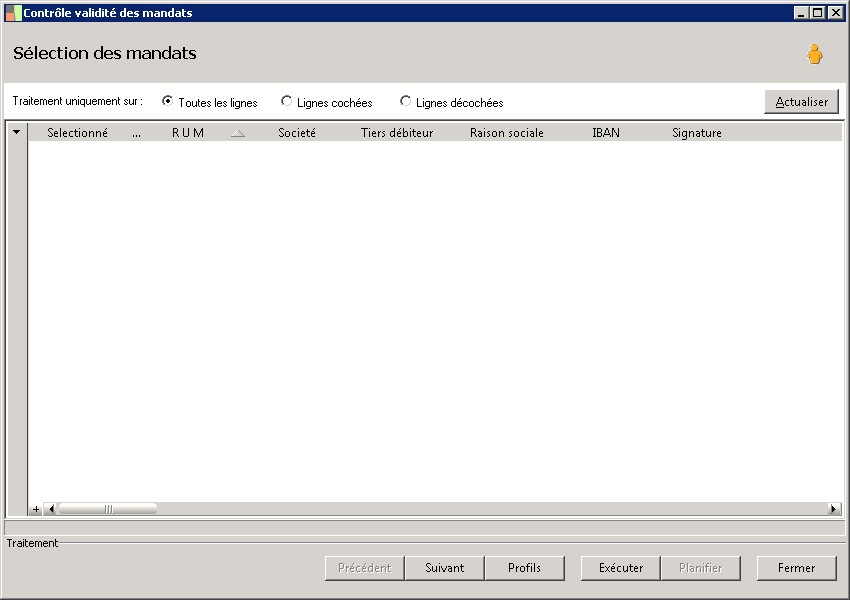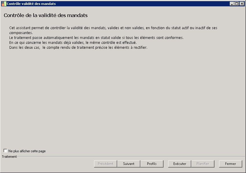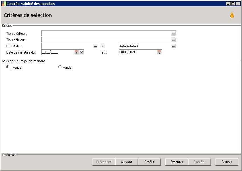 (Sage FRP 1000 Trésorerie) Menu Banque Paiement > Paramètres > Tiers > Contrôle validité des mandats