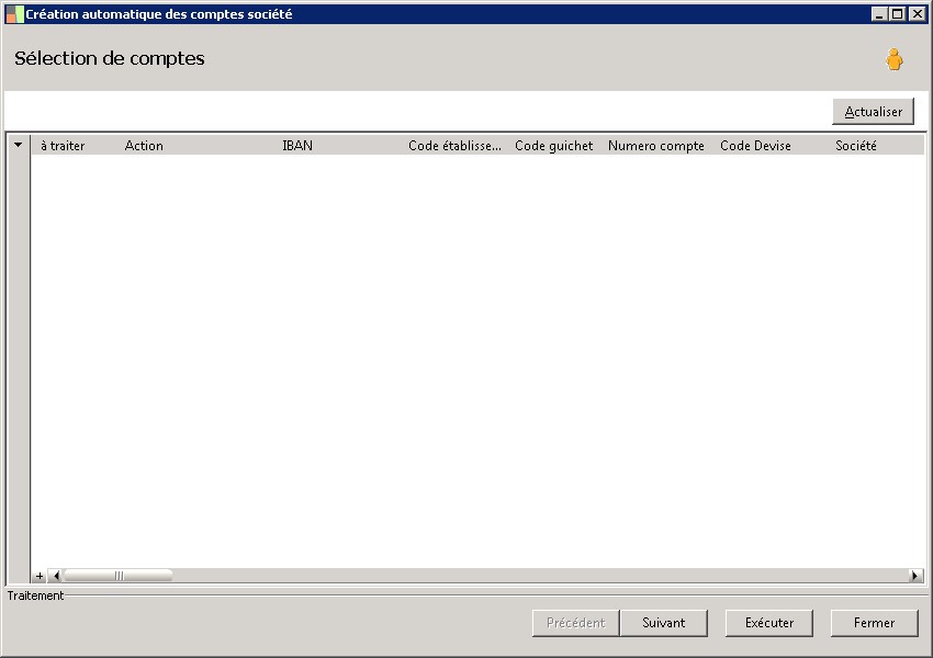 (Sage FRP 1000 Trésorerie) Menu Banque Paiement > Paramètres > Banques > Création automatique des comptes société