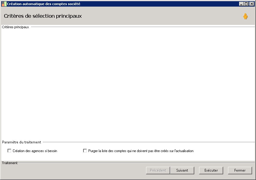 Le code société auquel vous souhaitez attaché le compte société doit existerou être créé préalablement. Le code banque auquel vous souhaitez attaché le compte société doit existerou être créé préalablement. |