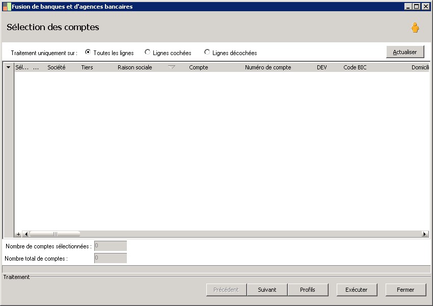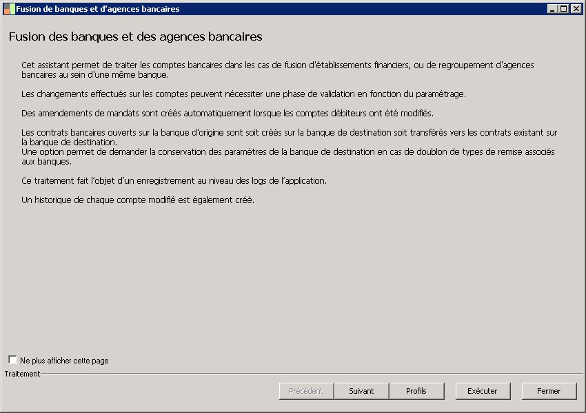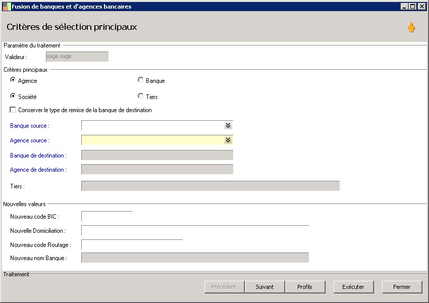 (Sage FRP 1000 Trésorerie) Menu Trésorerie > Paramètres > Banques > Fusion de banques et d'agences bancaires