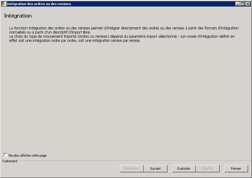 (Sage FRP 1000 Trésorerie) Menu Banque Paiement > Relevés et Notifications > Relevés L.C.R. à payer > Intégration des ordres ou des remises