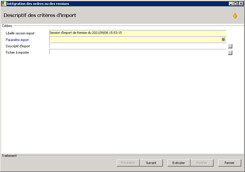 Vous devez sélectionner un paramètre import pour pouvoir procéder au traitement. |
