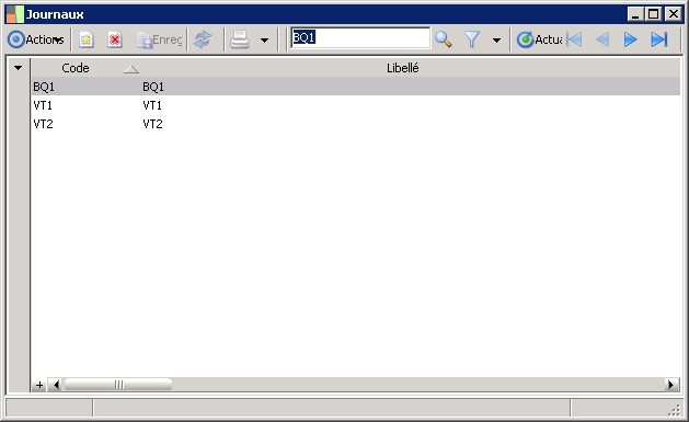 Cette liste permet de consulter, de créer, de modifier et de supprimer les journaux qui sont utilisés en saisie des écritures.