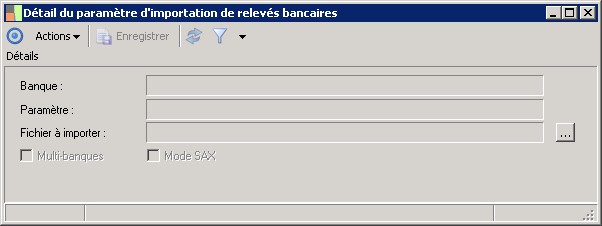 (Sage FRP 1000 Trésorerie) Menu Banque Paiement > Relevés et Notifications > Relevés divers > Détail du paramètre d'importation de relevés bancaires