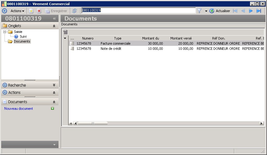 Cette zone représente la référence du document commercial pour le donneur d'ordre. |
