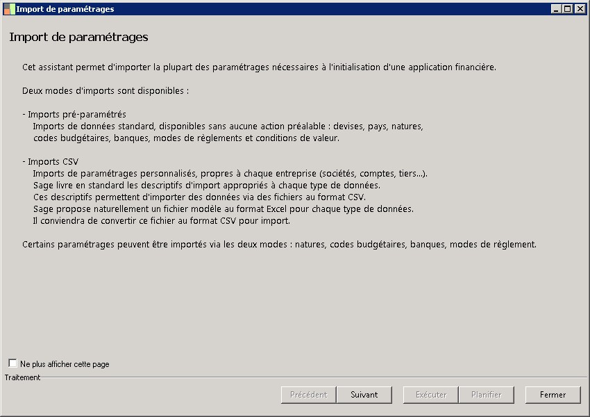 (Sage FRP 1000 Trésorerie) Menu Trésorerie > Initialisation > Import de paramétrages