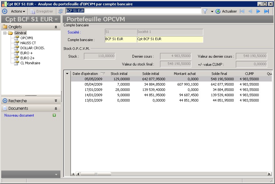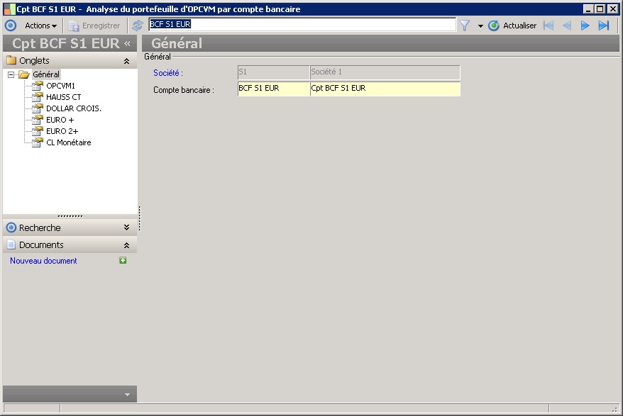 (Sage FRP 1000 Trésorerie) Menu Trésorerie > Analyse > Analyse du portefeuille d'OPCVM par compte bancaire