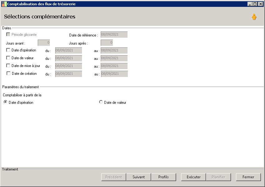 Comptabiliser à partir de la date d'opération ou de la date de valeur. |