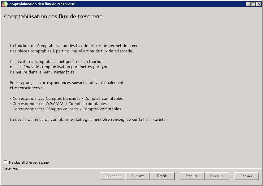 (Sage FRP 1000 Trésorerie) Menu Trésorerie > Comptabilisation > Comptabilisation des flux de trésorerie