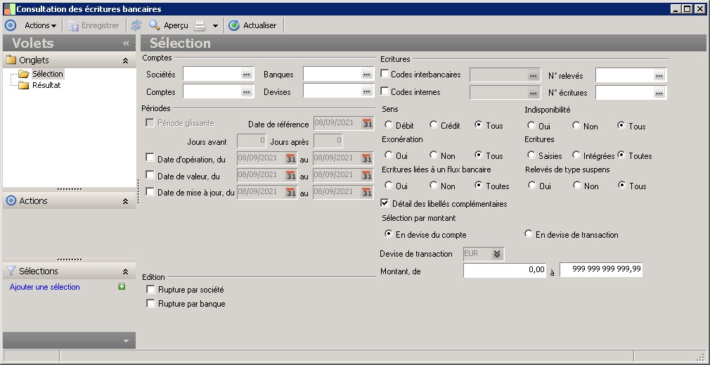 (Sage FRP 1000 Trésorerie) Menu Trésorerie > Rapprochement > Ecritures bancaires > Consultation des écritures bancaires