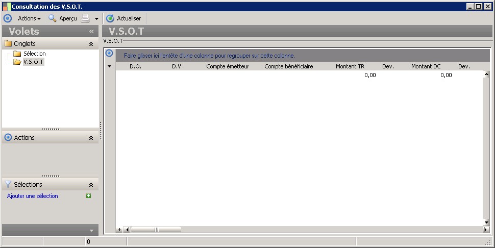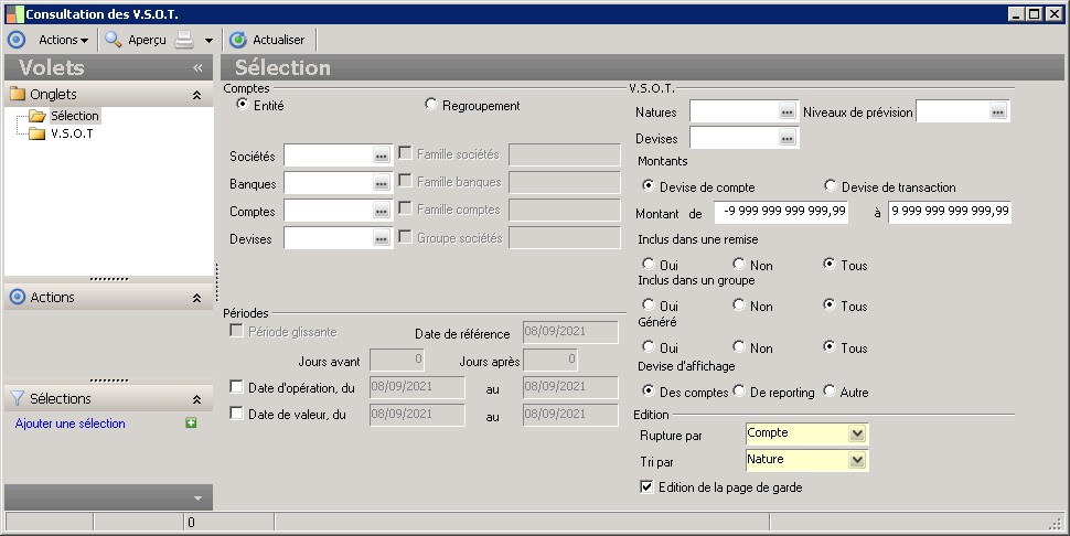 (Sage FRP 1000 Trésorerie) Menu Trésorerie > Equilibrage > Remises historiques > Consultation des V.S.O.T.
