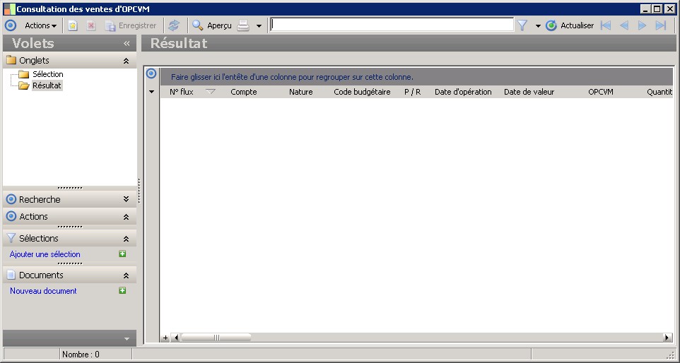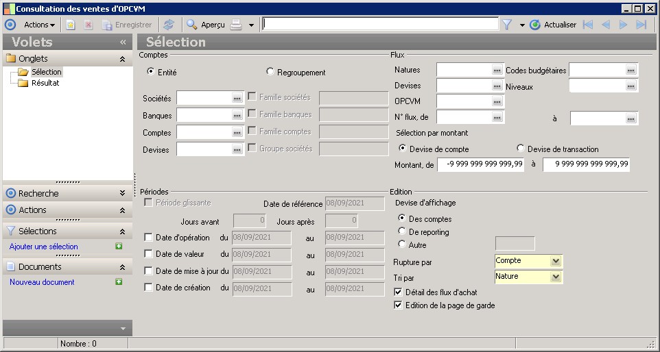 (Sage FRP 1000 Trésorerie) Menu Trésorerie > Initialisation > Flux d'initialisation > Consultation des ventes d'OPCVM