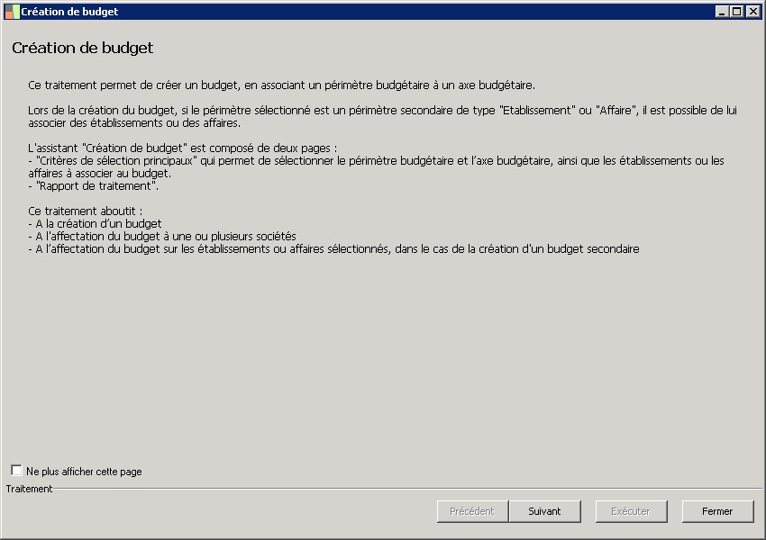 (Sage FRP 1000 Trésorerie) Menu Budget > Paramètres > Création de budget