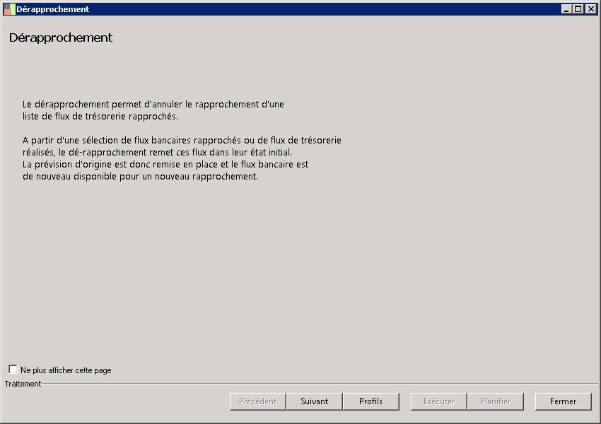 (Sage FRP 1000 Trésorerie) Menu Trésorerie > Rapprochement > Dérapprochement