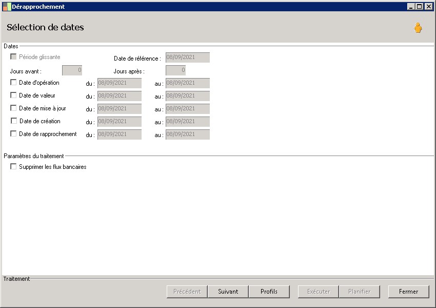 C'est la date laquelle on rapproche des flux bancaire avec des flux de trésorerieUtilisé dans le traitement du rapprochement(automatique et manuel) et lors de traitement d'intégration des flux de reprise en historique. |