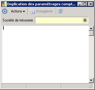 (Sage FRP 1000 Trésorerie) Menu Trésorerie > Paramètres > Duplication des paramétrages comptables