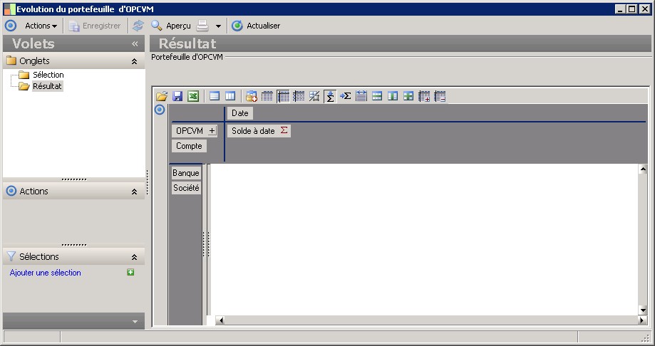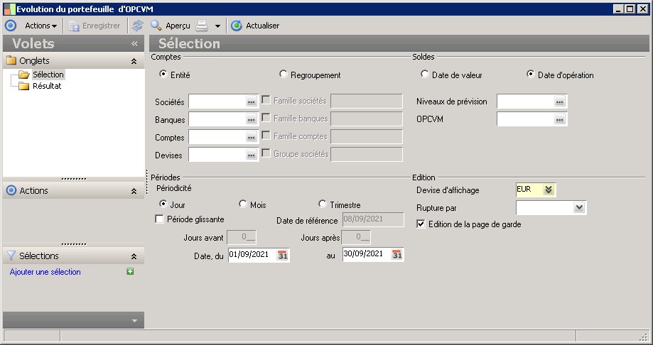 (Sage FRP 1000 Trésorerie) Menu Trésorerie > Analyse > Evolution du portefeuille d'OPCVM