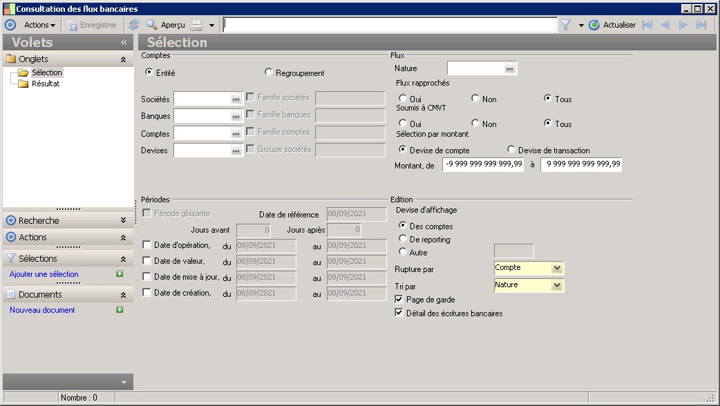 (Sage FRP 1000 Trésorerie) Menu Trésorerie > Rapprochement > Consultation des flux bancaires