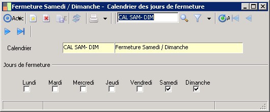 (Sage FRP 1000 Trésorerie) Menu Trésorerie > Paramètres > Généraux > Calendrier des jours de fermeture