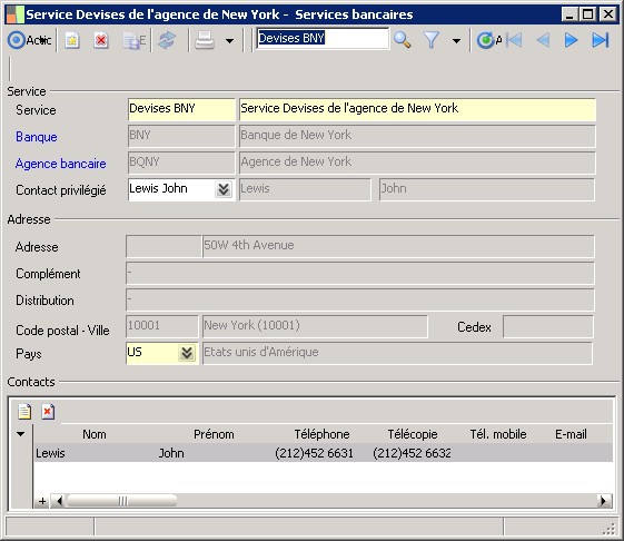 (Sage FRP 1000 Trésorerie) Menu Trésorerie > Paramètres > Banques > Services bancaires