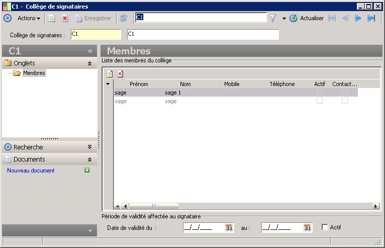 Le signataire membre du collège a des droits de validation à partir de cette date. |