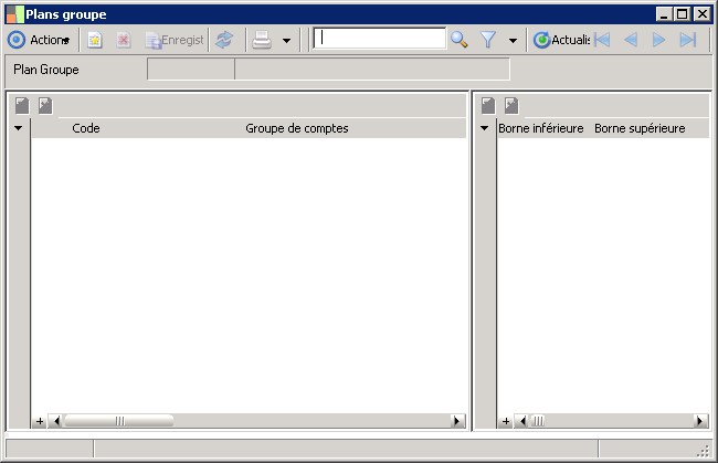 (Sage FRP 1000 Trésorerie) Menu Budget > Paramètres > Plans groupe