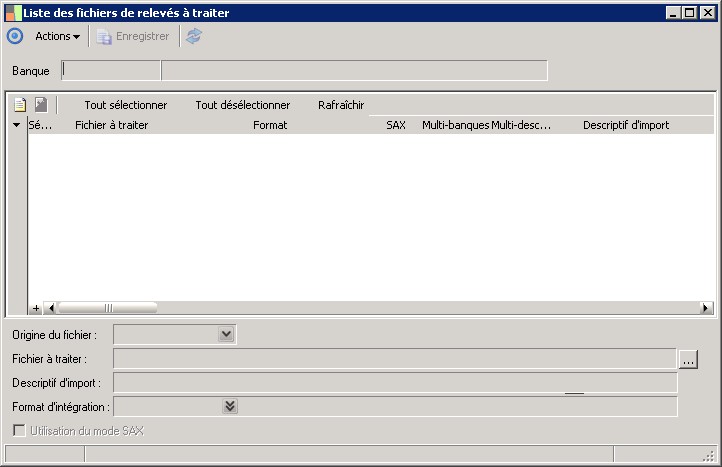 (Sage FRP 1000 Trésorerie) Menu Trésorerie > Rapprochement > Relevés > Liste des fichiers de relevés à traiter