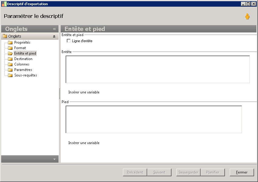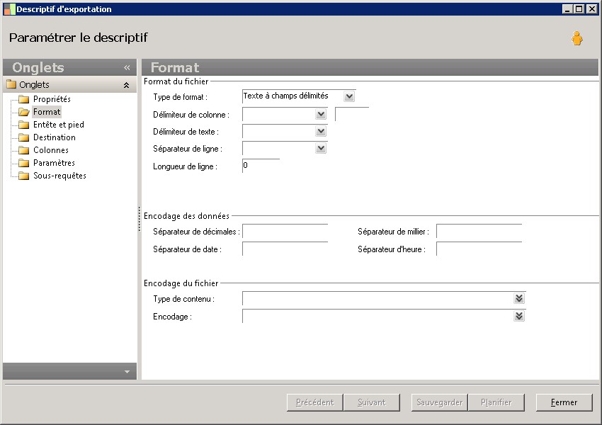 (Sage FRP 1000 Trésorerie) Menu Trésorerie > Outils > Descriptif d'exportation