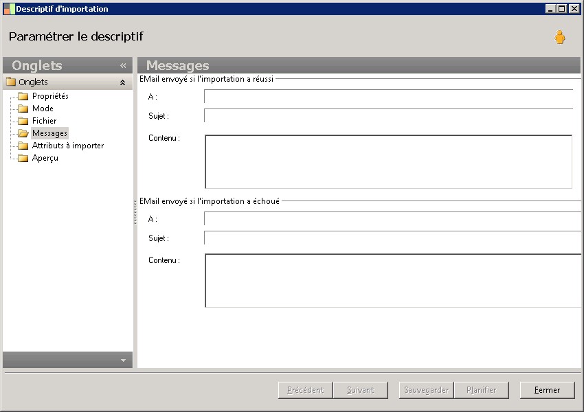 EMail envoyé si l'importation a échoué |