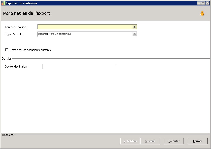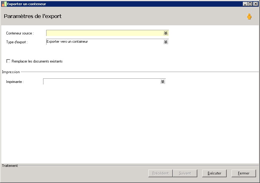 (Sage FRP 1000 Trésorerie) Menu Trésorerie > Outils > Exporter un conteneur