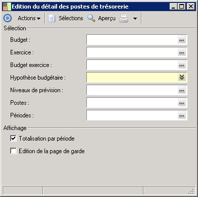 Cet écran permet d'éditer le détail des postes de trésorerie pour une hypothèse budgétaire donnée.