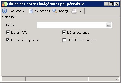 (Sage FRP 1000 Trésorerie) Menu Budget > Paramètres > Edition des postes budgétaires par périmètre