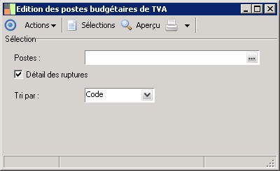 (Sage FRP 1000 Trésorerie) Menu Budget > Paramètres > Edition des postes budgétaires de TVA