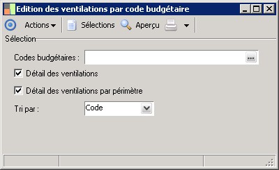 Permet d'éditer le détail des ventilations par périmètre pour les codes budgétaires sélectionnés.