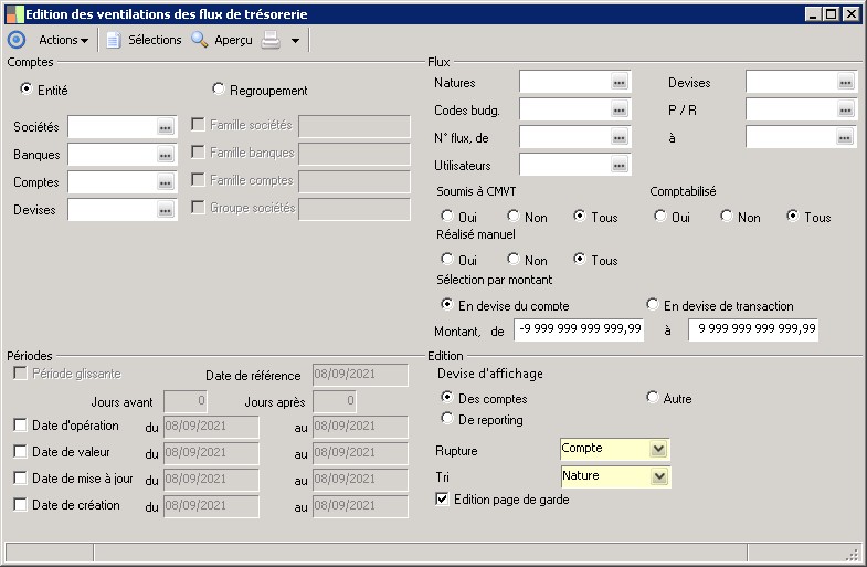 (Sage FRP 1000 Trésorerie) Menu Budget > Ventilations > Edition des ventilations des flux de trésorerie