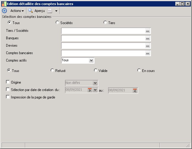 L'édition détaillée des comptes permet de visualiser, pour chaque compte bancaire, sa date de création, son statut et l'opérateur responsable de sa création.
