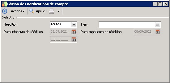 (Sage FRP 1000 Trésorerie) Menu Banque Paiement > Paramètres > Banques > Edition des notifications de compte