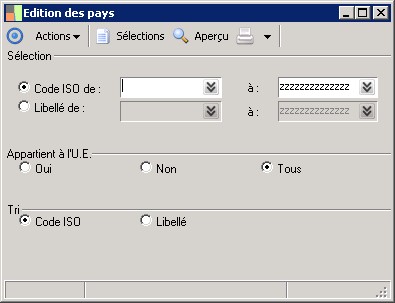 (Sage FRP 1000 Trésorerie) Menu Trésorerie > Paramètres > Généraux > Edition des pays