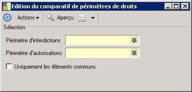 (Sage FRP 1000 Trésorerie) Menu Trésorerie > Paramètres > Périmètres > Edition du comparatif de périmètres de droits