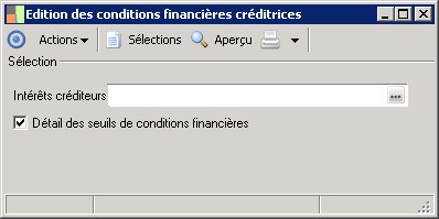 (Sage FRP 1000 Trésorerie) Menu Trésorerie > Paramètres > Echelles d'intérêts > Edition des conditions financières créditrices