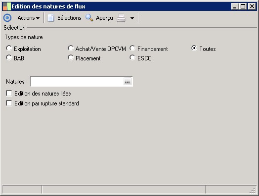 (Sage FRP 1000 Trésorerie) Menu Trésorerie > Paramètres > Généraux > Edition des natures de flux