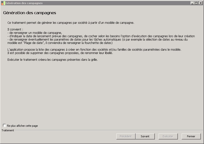 (Sage FRP 1000 Banque Paiement) Menu Campagne > Campagnes > Génération des campagnes