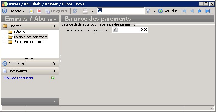 Permet de renseigner le montant de seuil pour la déclaration à la balance des paiements. |
