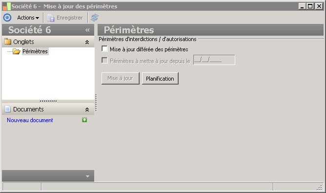 Option permettant de différer la mise à jour des périmètres d'interdictions ou d'autorisations lorsqu'un éléments des périmètres (compte, société, ...) est modifié.La mise à jour des périmètres peut se faire manuellement ou être planifiée. |