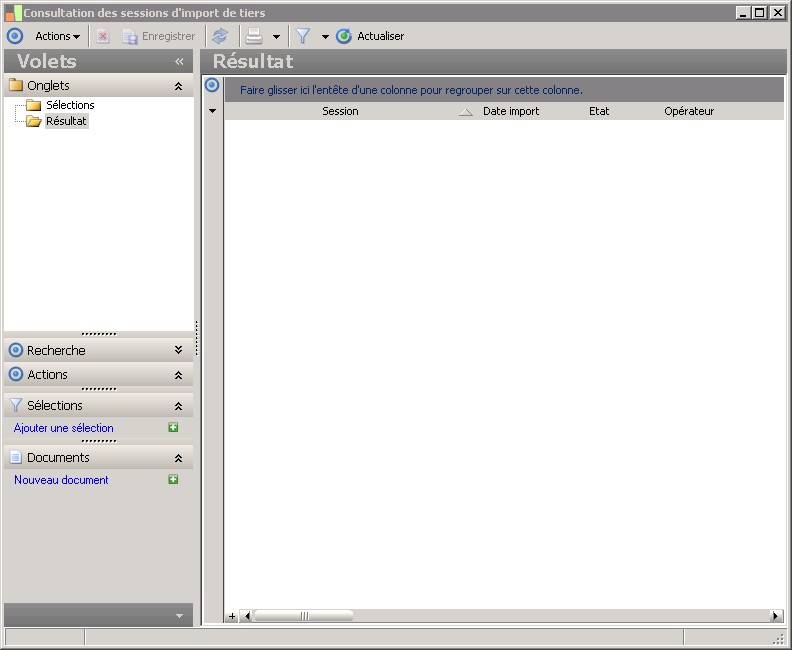 (Sage FRP 1000 Banque Paiement) Menu Banque Paiement > Initialisation > Consultation des sessions d'import de tiers